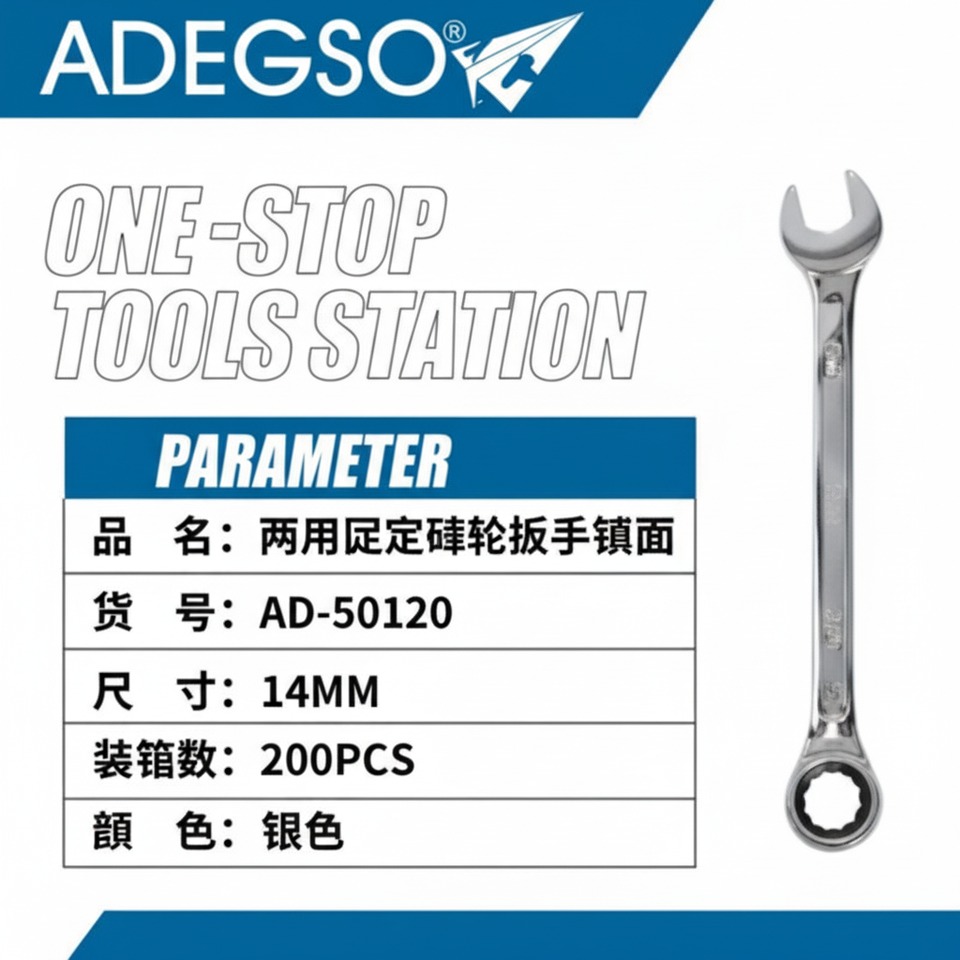 Wholesale 14mm Double-Use Fixed Ratchet Wrench Adjustable Steel Spanner for DIY 21mm Size in Box Packaging