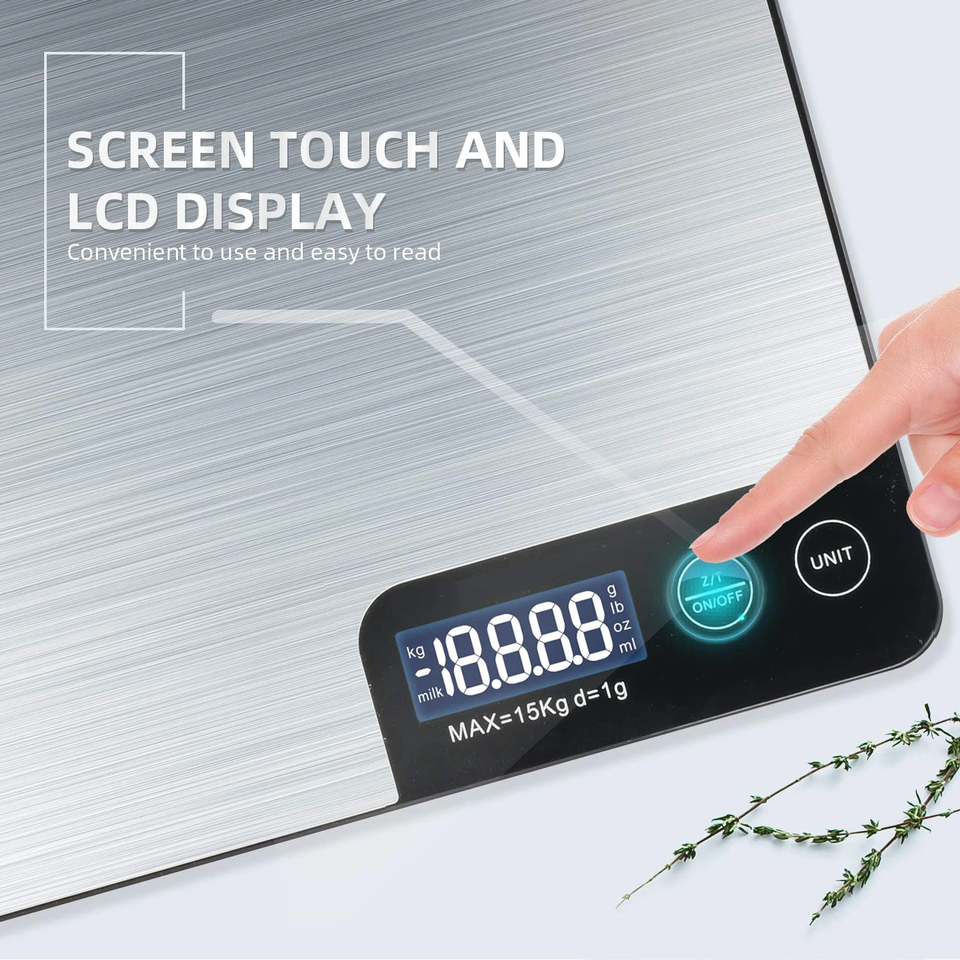 Wholesale 15kg Stainless Steel Digital Kitchen Scale Battery-Powered LCD Display Electronic Food Weighing and Weight Measuring