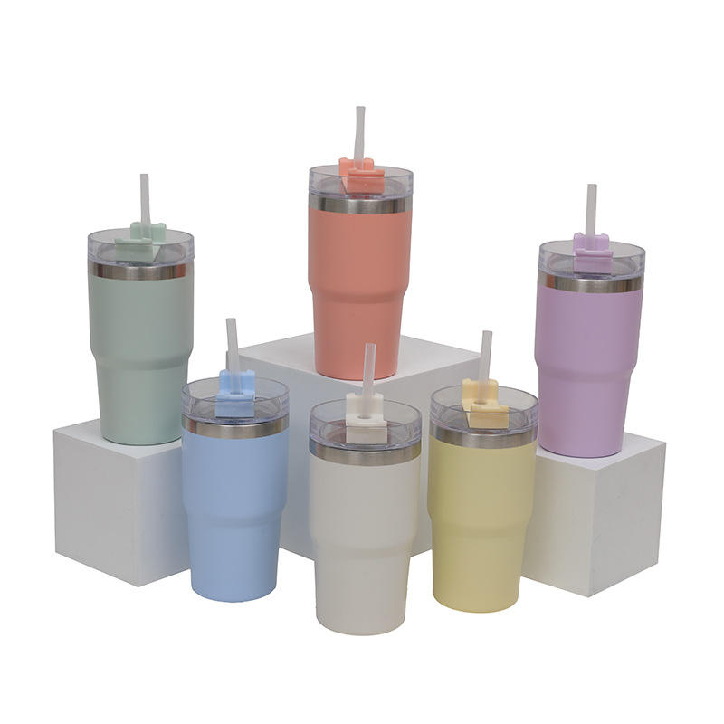 Wholesale 15oz Stainless Steel Vacuum Insulated Modern Curve Travel Mugs Tumbler with Straw