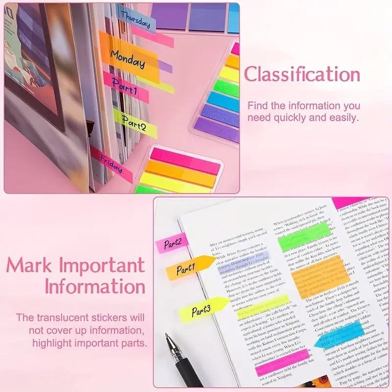 Wholesale 1600 Sheets High Quality Self-Adhesive Fluorescent Waterproof Arrow Index Tab BOPP Material 14.99CM*7.28CM for Study