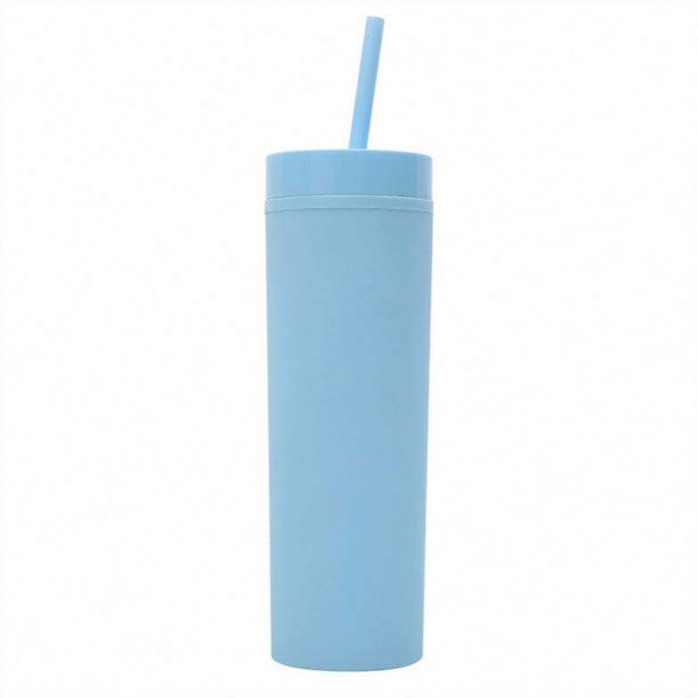 Wholesale 16Oz Matte Color Double Wall Plastic Straight Skinny Tumbler With Lid and Straw Custom Diy Vaso Acrylic Tumbler