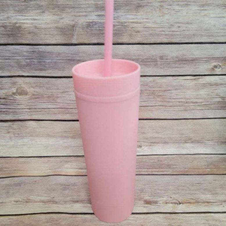 Wholesale 16oz Double Wall Reusable Matte Plastic Water Bottle Acrylic Skinny Tumbler with Lid Straw BPA Free in Bulk