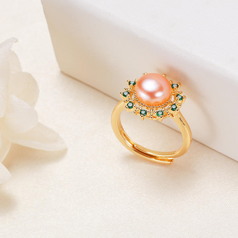 Wholesale 18K Plated Semi-Circular Freshwater Pearl and Zircon Rings Zhuji Jewelry Stall Supply for Women