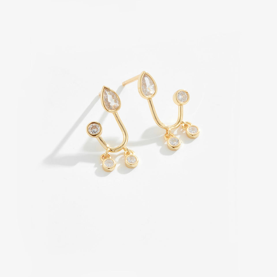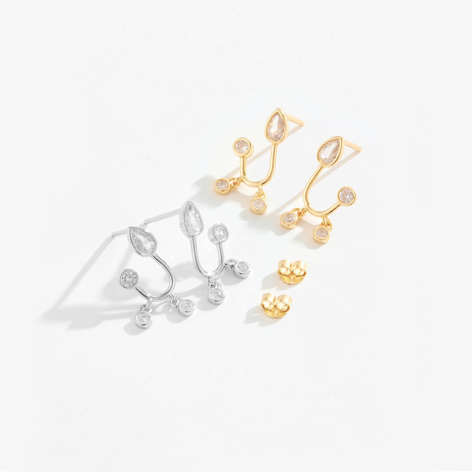 Product Name:18K Solid Gold Round & Pear Cut Dangle Stud Earrings