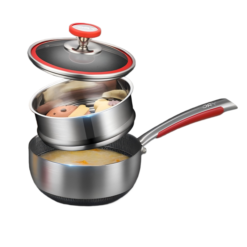 Wholesale 18cm Modern Stainless Steel Non-Stick Steam Pot Double Layer Small Milk Pot with Glass Lid for Kitchen