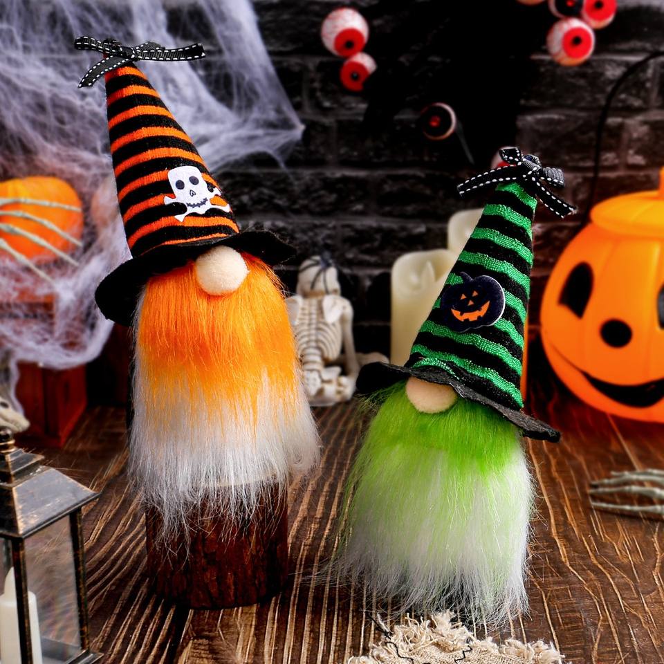 Wholesale 1PC Mini Tricolor Plush Witch Hat Ghost Festival Figurine Bar Decoration for Halloween Holiday Supplies