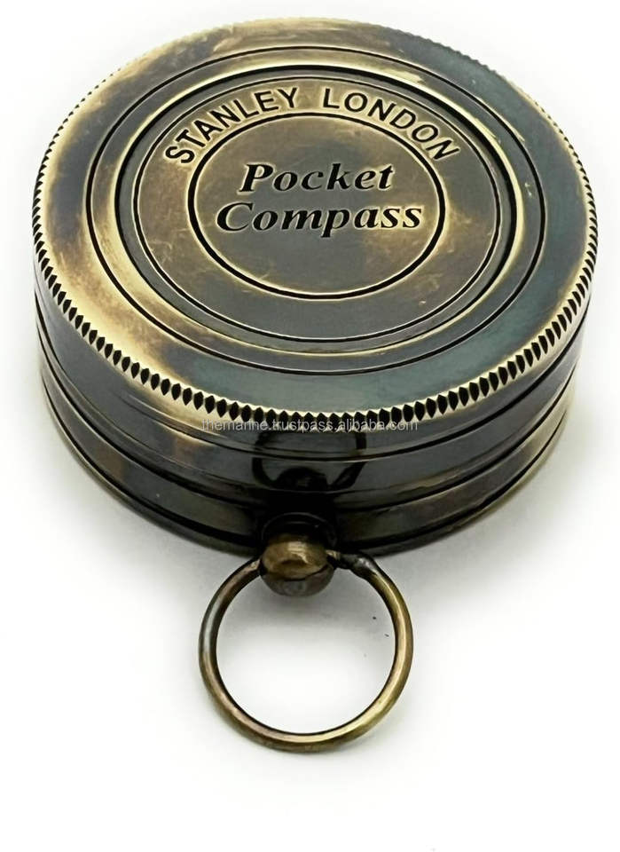 Wholesale 2'' Antique Nautical Brass Sundial Compass Stanley London Pocket Compass for Gift .