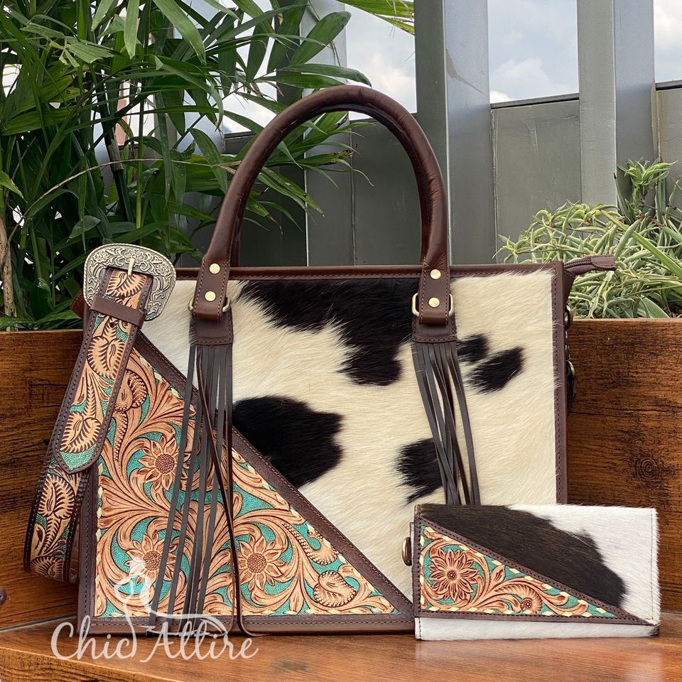 Hand Tooled Cowhide Leather 2 Pieces Combo Set