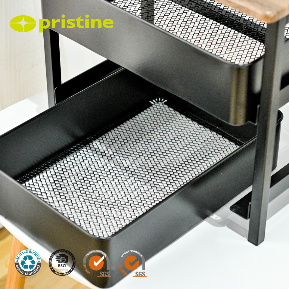 Wholesale 2-Tier Metal Kitchen Rack From Taiwan Household Manufacturer MDF Board Top with Countertop Basket Drawer-Sale Shelf
