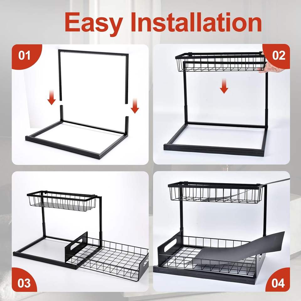 Wholesale 2 Tier Under Bathroom Counter Cabinet Shelf Pull Out Rack Organizer for Kitchen