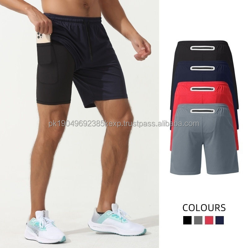 Wholesale 2 in 1 Jogger Shorts Mens Gym Workout Short Running Shorts With Inner Phone Pocket Compression Sport Shorts for Men