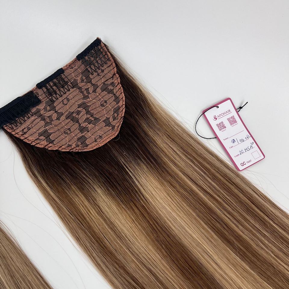 Wholesale 20 Inches Remy Hair Extensions Raw Vietnamese Cuticle Aligned Ponytail with Balayage Color #1A/#4Q+#6C