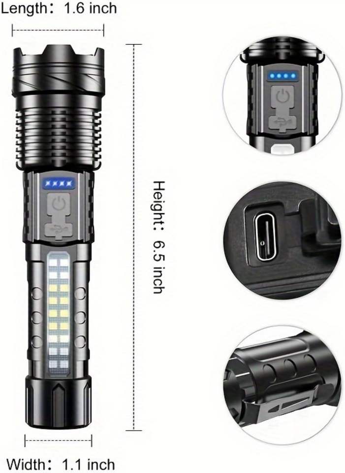 Wholesale 20000 Lumen High Power Aluminum Rechargeable Flashlight Side LED Red Light IPX6 Waterproof 100000 Hours Runtime