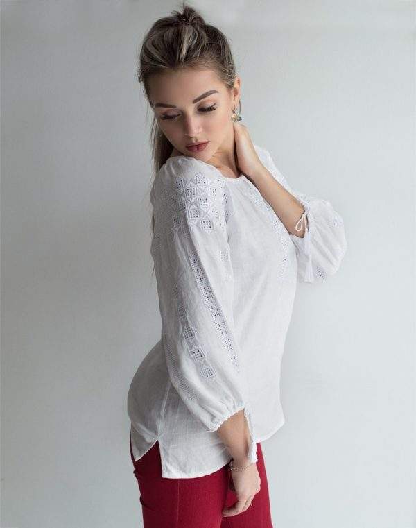 Wholesale 2021 Spring and Summer Korean Casual Fashion Retro Blouse Lapel Embroidery Single Breasted Lantern Sleeve Shirt