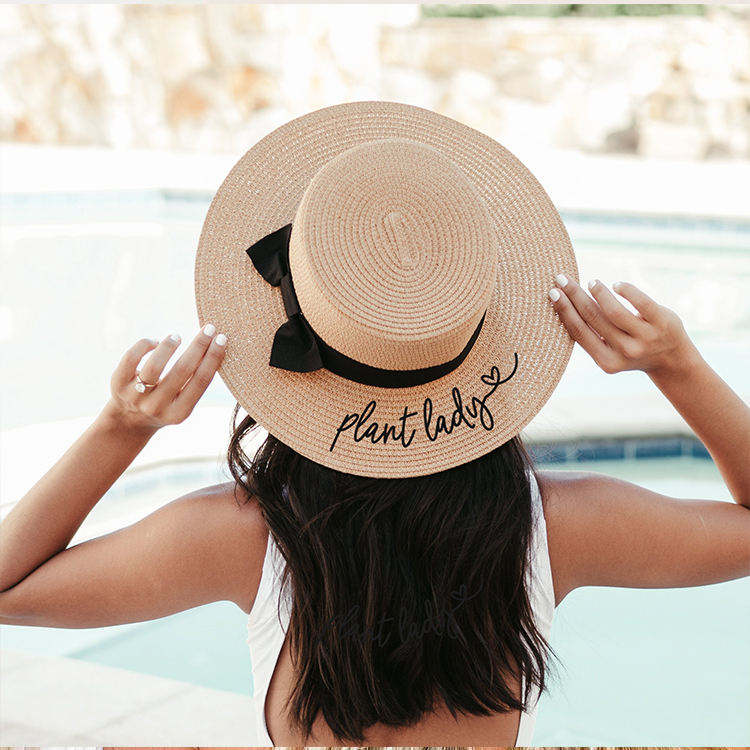 Wholesale 2022 Printed Image Visor Oversized Custom LOGO Wide Brim Bow Beach Outdoor Travel Straw Hats for Women Summer