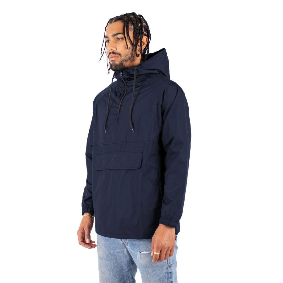 Wholesale 2023 Navy Blue Men's Waterproof Windbreaker Jacket Canvas Fabric Winter Arrival with Front Pocket and Attached Hood
