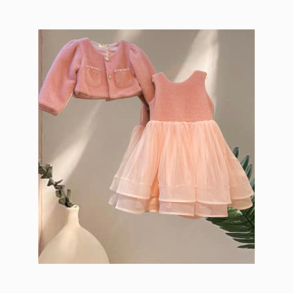Wholesale 2023 Winter Long Sleeve Dress and Jacket Set for Children Princess Party Dress