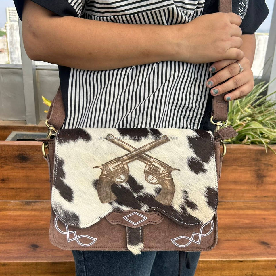 Wholesale 2024 Factory Custom Fashion Suede Leather Ladies Crossbody Bags Hair on Cowhide Laser Engraving Trendy Women Handbags