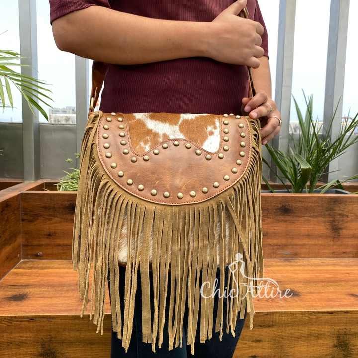 Genuine Cowhide Leather Fringe Bag