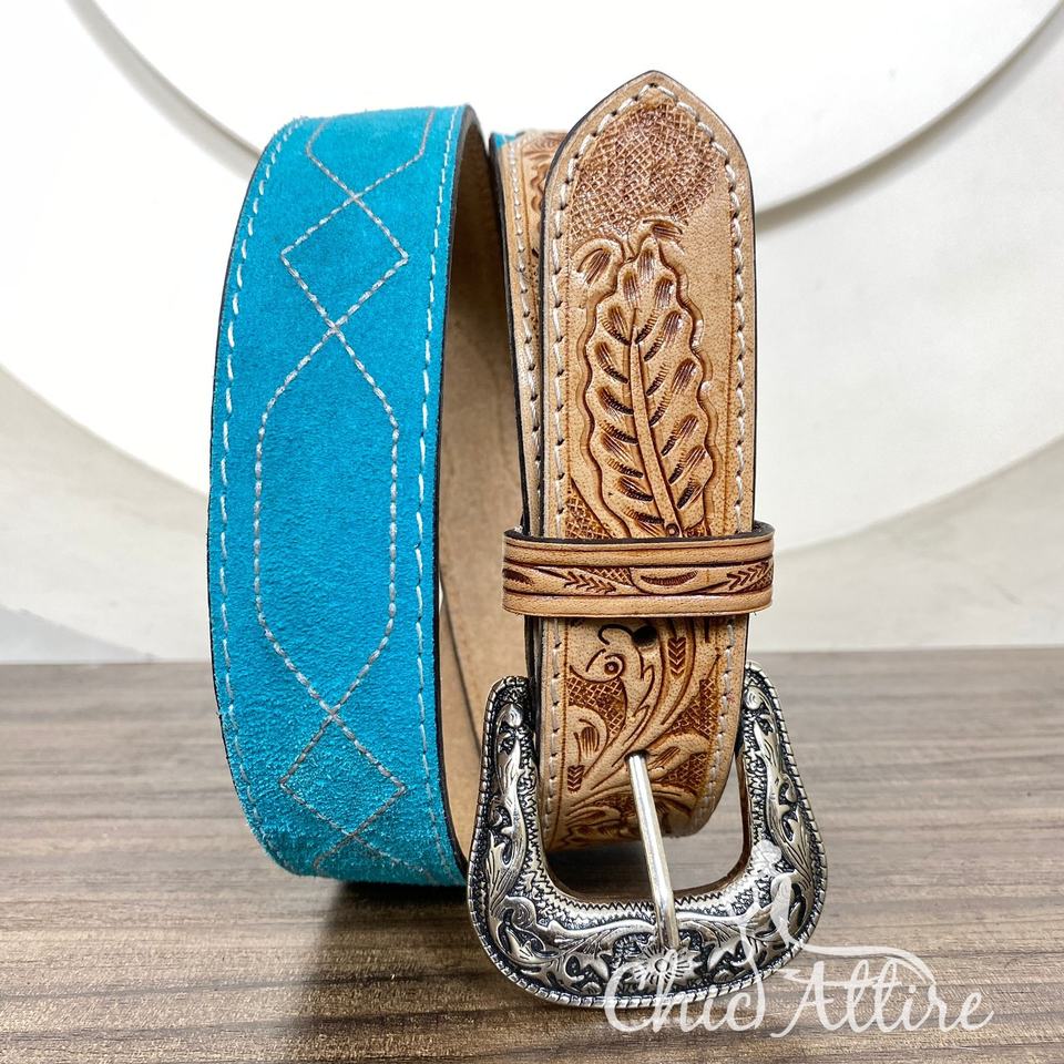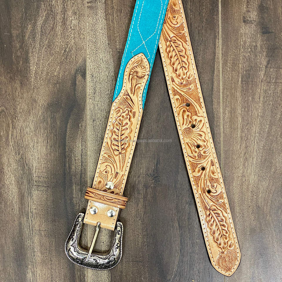 Product name:Boot Stitch Hand Tooled Suede Leather Belt
