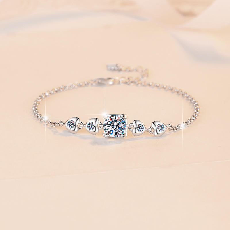 Wholesale 2025 New Arrival 925 Sterling Silver Bullhead Heart Bracelet 1 Carat Moissanite Women's Romantic Statement Jewelry