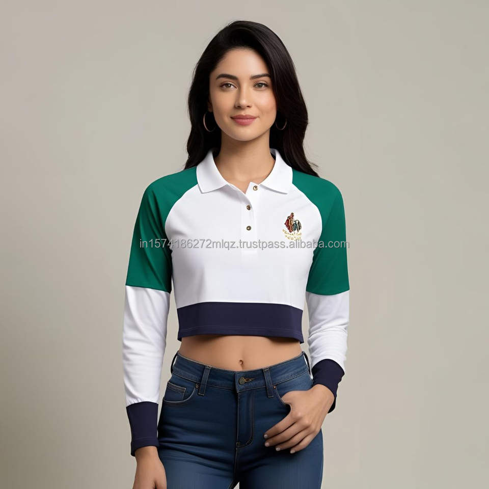 Wholesale 2025 stylish long sleeve crop tops for women made by top clothing manufacturers in custom designs for all sizes