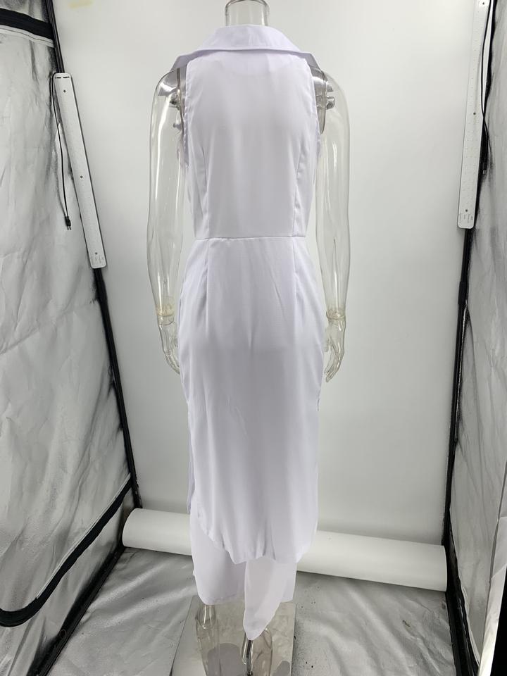 Wholesale 2026 Chic Summer Trousers Sets Sleeveless Women Long Waistcoat Wide Leg Pants White Office Lady Elegant Women Suits