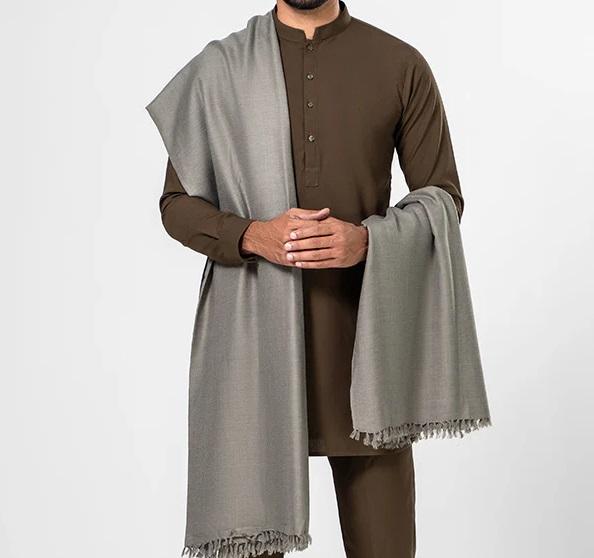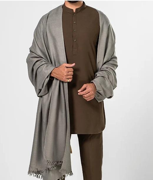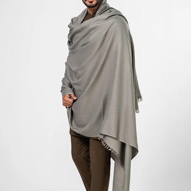 Wholesale 2026 Elegant Men Shawl Traditional Grey Color Jacquard Warm Knitted Kashmiri Pakistan Made Shawls For Wedding