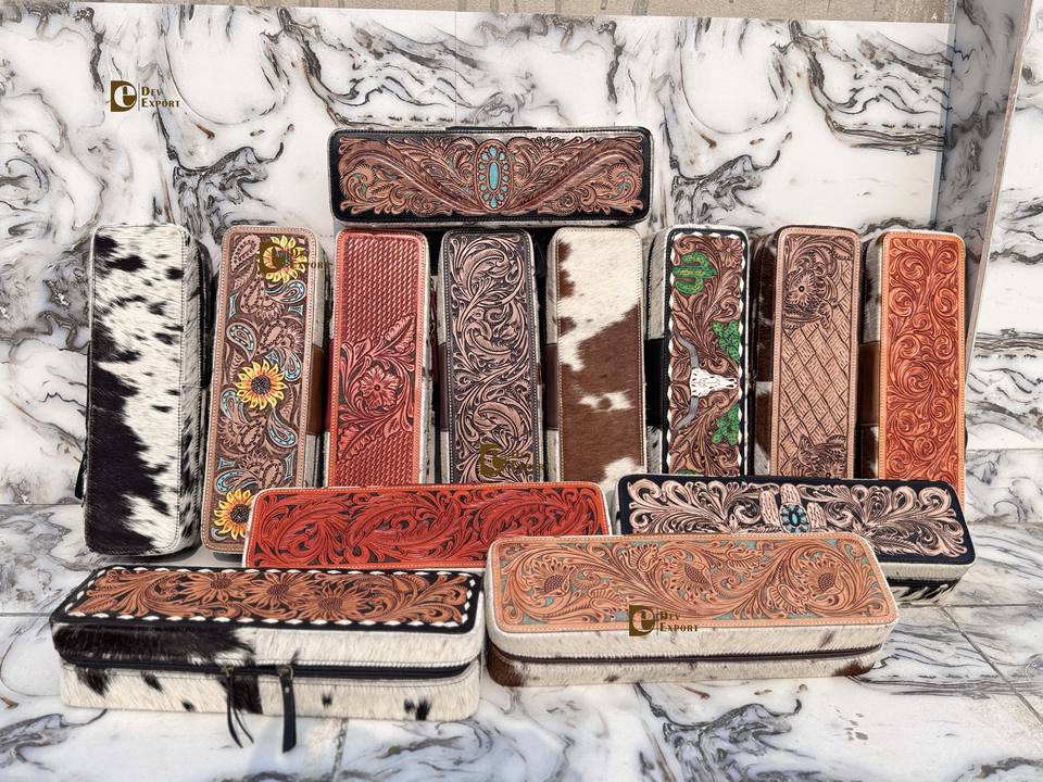 Wholesale 2026 Hand Tooled Leather Heat Resistant Curling Iron Case Western Hair On Hide Fur Perfect Organizer for Hair Tools