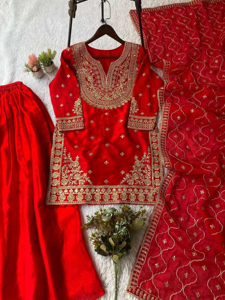 Wholesale 2026 New Arrival Pakistani Red Silk Suit Custom Embroidered Stitched Salwar Kameez High Quality Ethnic Summer/Winter