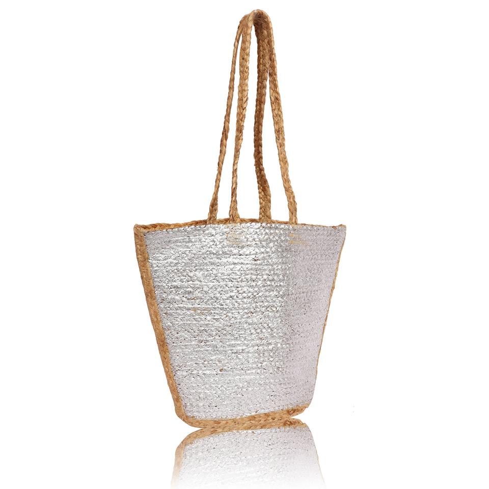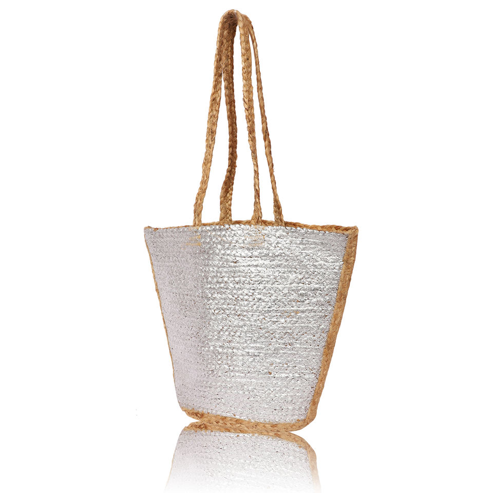 Wholesale 2026 Trendy Silver Printed Braided Jute Handbag Custom Logo Handmade Party Tote for Women Shopping Bag