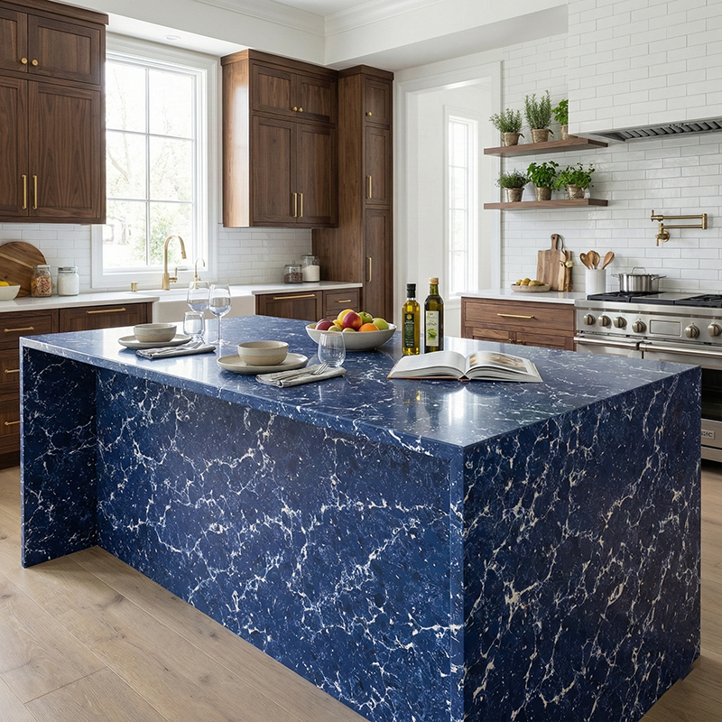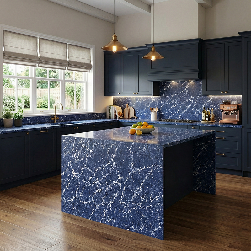 Wholesale 20mm 30mm Polished Cobalt Blue Artificial Quartz Stone Slab Countertop for Custom Kitchen Island Dining Table Vanity