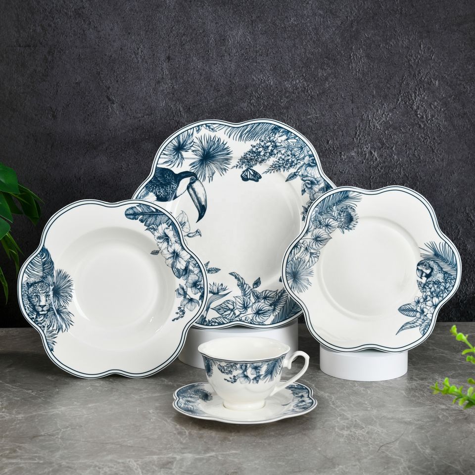 Wholesale 20pcs Luxury Blue Elegance Classic Ceramic Plate Dinner Porcelain Dishes Set Home Use Tableware Dinnerware Sets