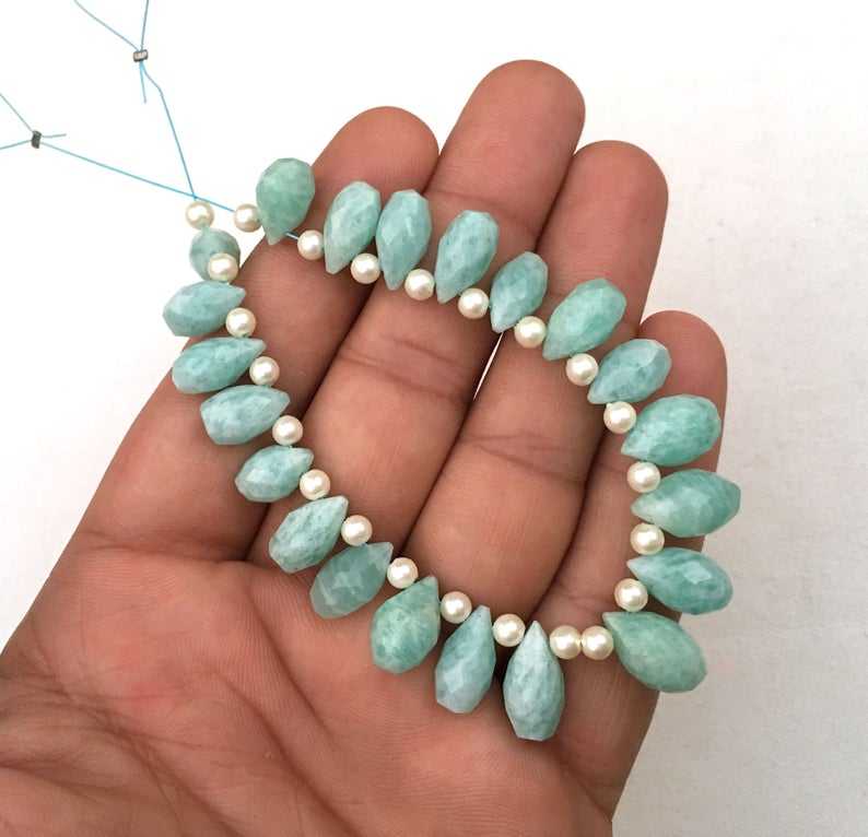 Wholesale 21-Piece Faceted Teardrop Beads Natural Amazonite Gemstone Green Colour Genuine High Quality Manufacturer Direct