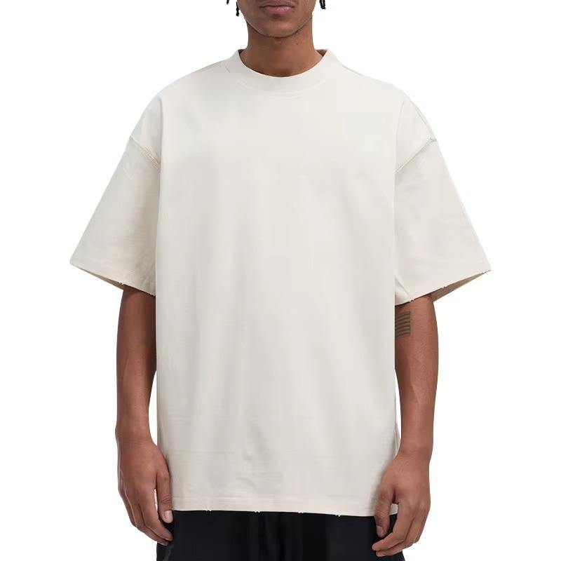 Wholesale 260gsm Vintage Heavy Mock Neck T-Shirt Boxy Fit Oversize Drop Shoulder Cropped Box Fit Tee Shirts 100% Cotton