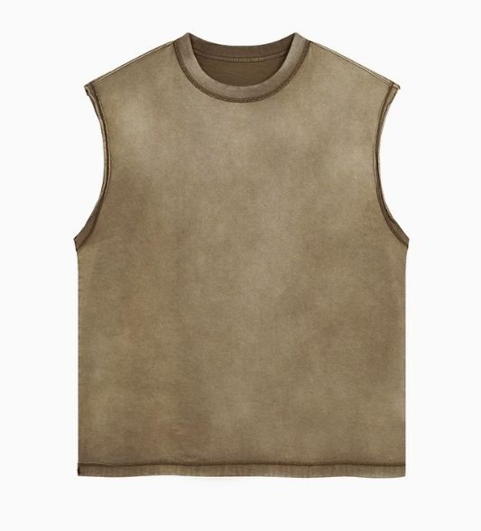 Wholesale 270Gsm Cotton Tank Top Custom Sleeveless T-shirt Men Loose Oversized Acid Wash Sleeveless Vest T-shirt for men