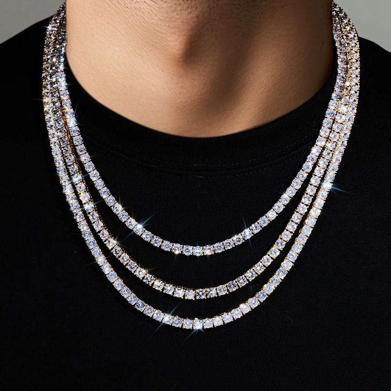 Wholesale 3/4/5MM Iced Tennis Chain Necklace White Gold Plated Shiny Moissanite Diamond Necklace for Women Hip Hop Style