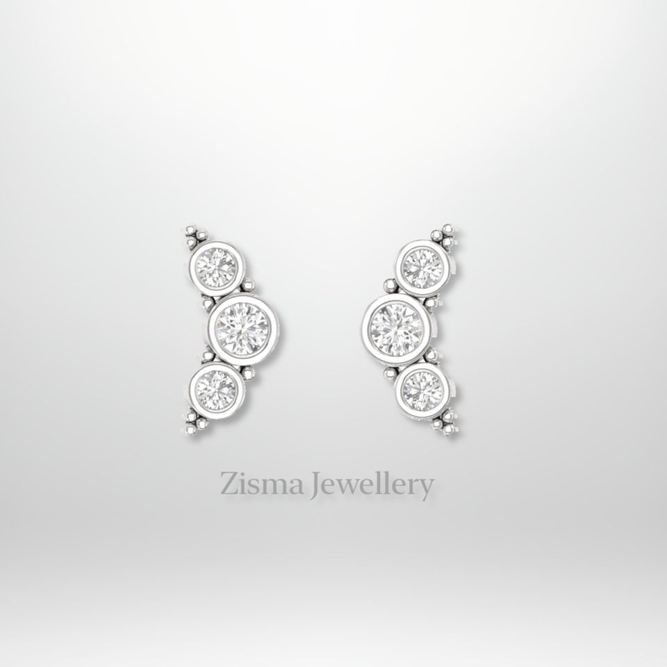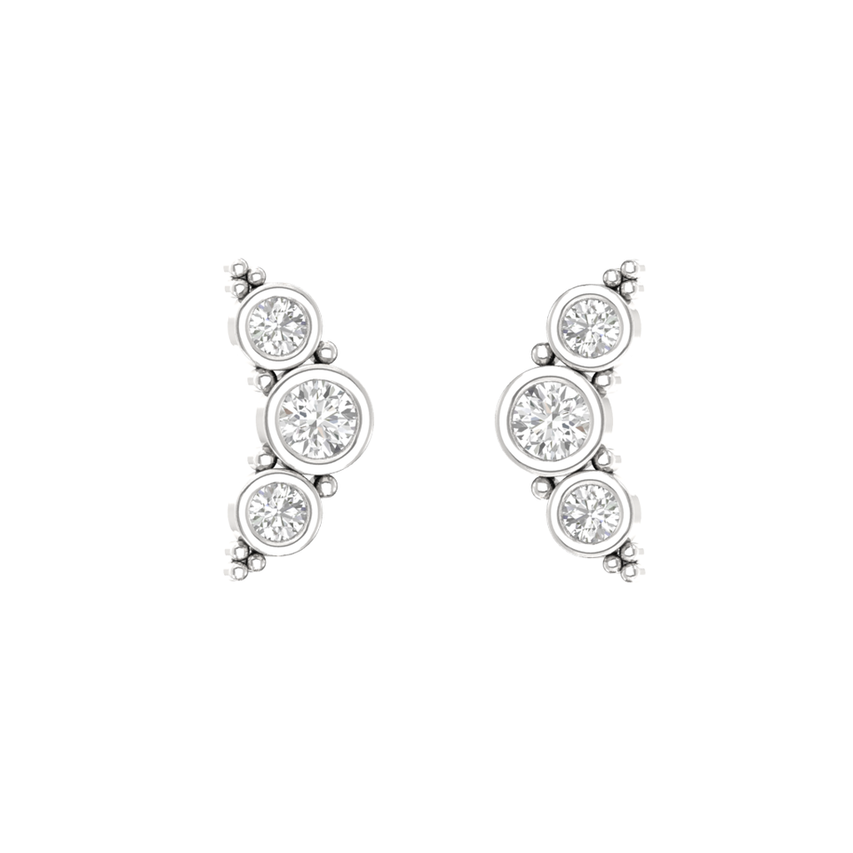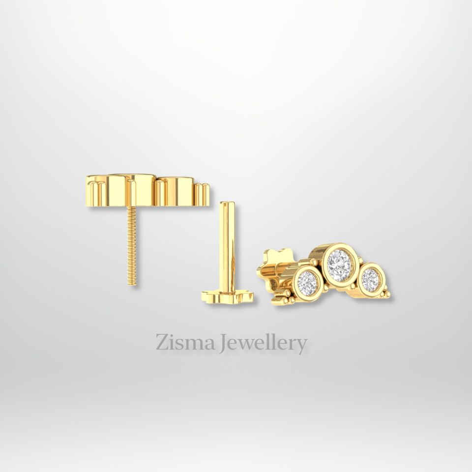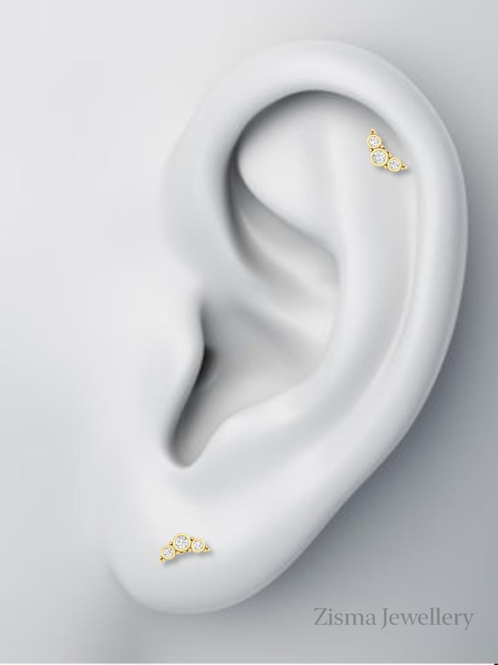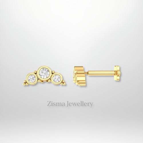 Wholesale 3 Diamond Bezel Curve Stud Earrings 14K Gold Helix and Cartilage Piercing Jewelry Natural and Lab Grown Diamonds