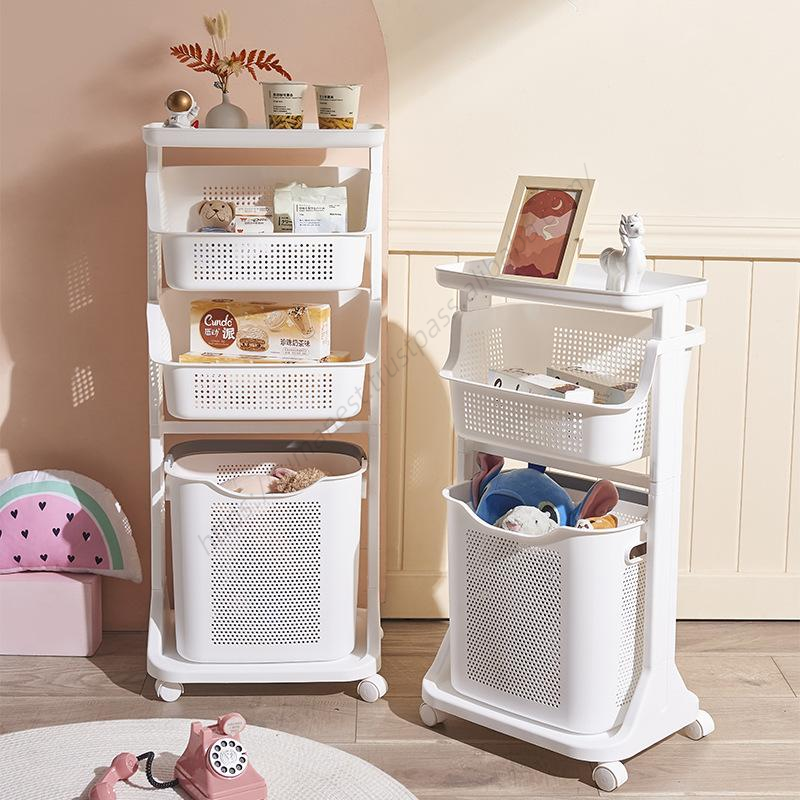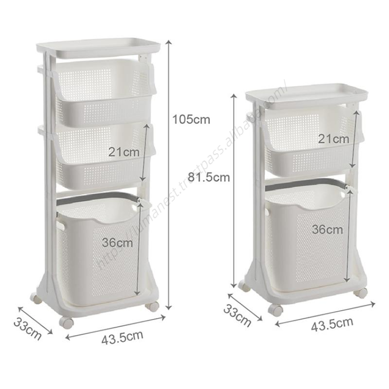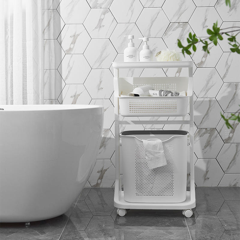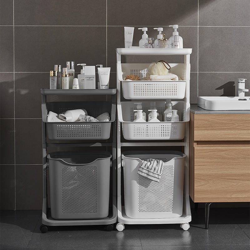 Wholesale 3 Layers Mobile Laundry Basket Storage Rack Multi Functional Wheeled Household Bathroom Organizer