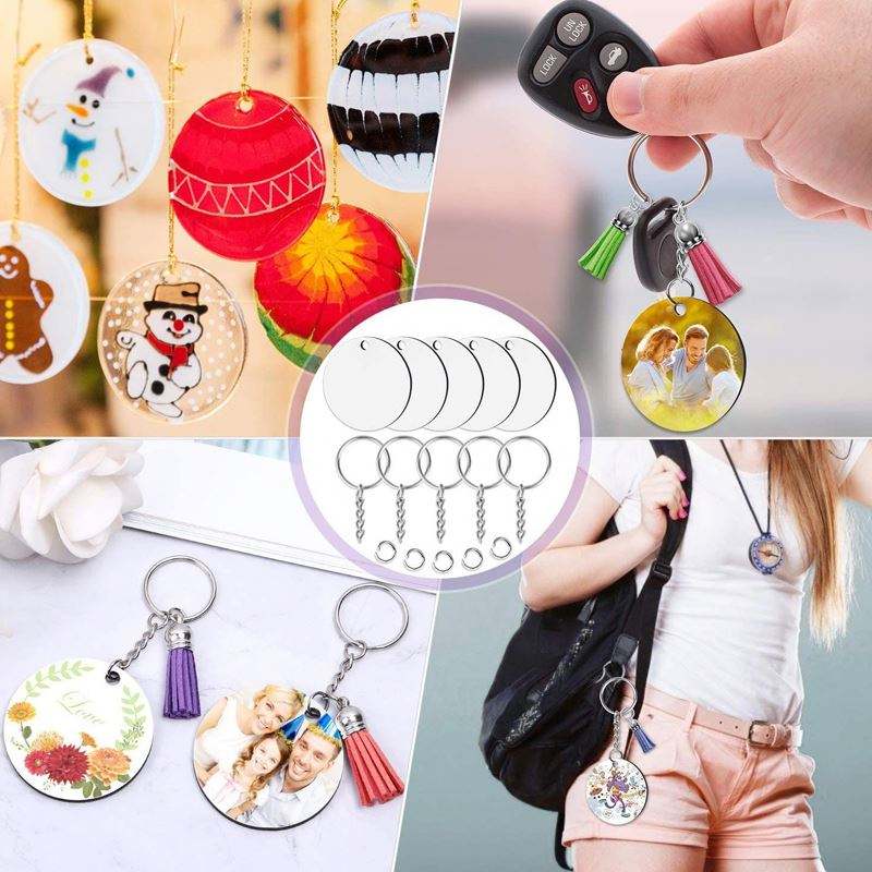 Wholesale 30 Pcs Sublimation, Blank Keychain Heat Transfer Diy Double-size Printed Transparent Circle Acrylic Keychain/