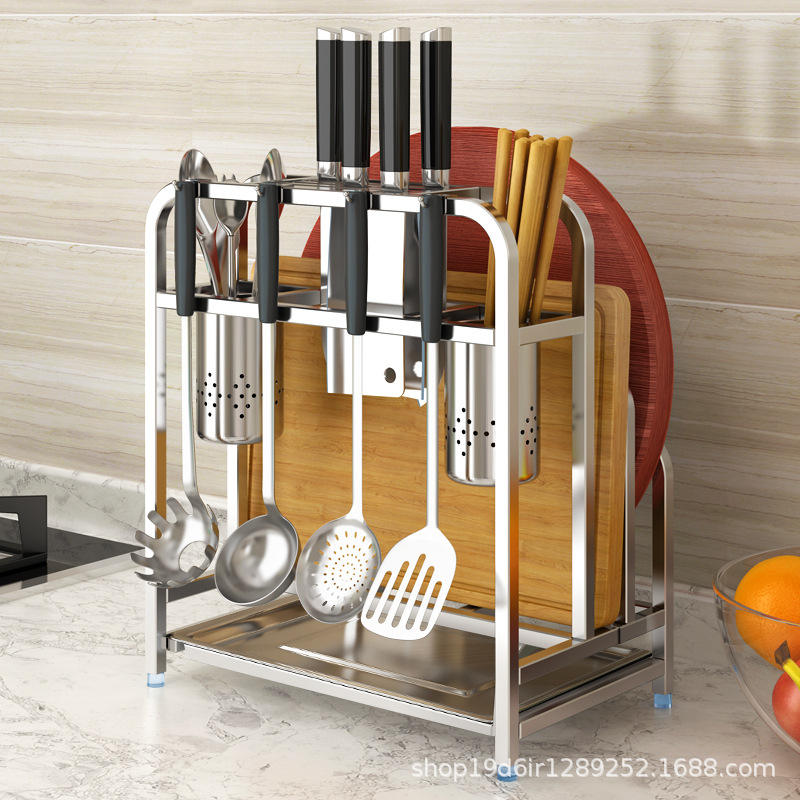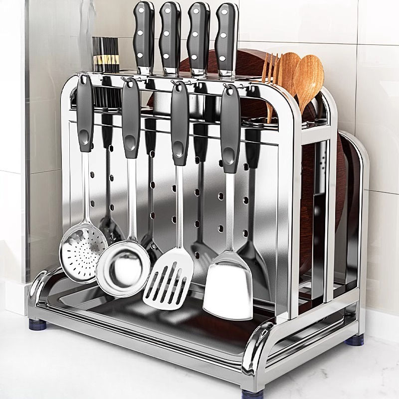 Wholesale 304 Stainless Steel Wall Mounted Double Tier Knife Holder Kitchen Rack Multi-functional Sustainable Storage for Tools