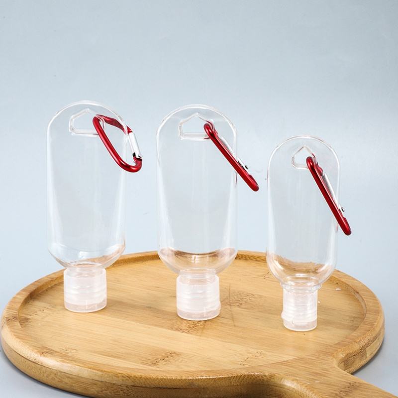 Wholesale 30ml 50ml 60 ml 1oz 2oz Lotion Hand Sanitizer Squeeze Bottles PETG Plastic Bottles With Flip Cap With Carabiner Hook