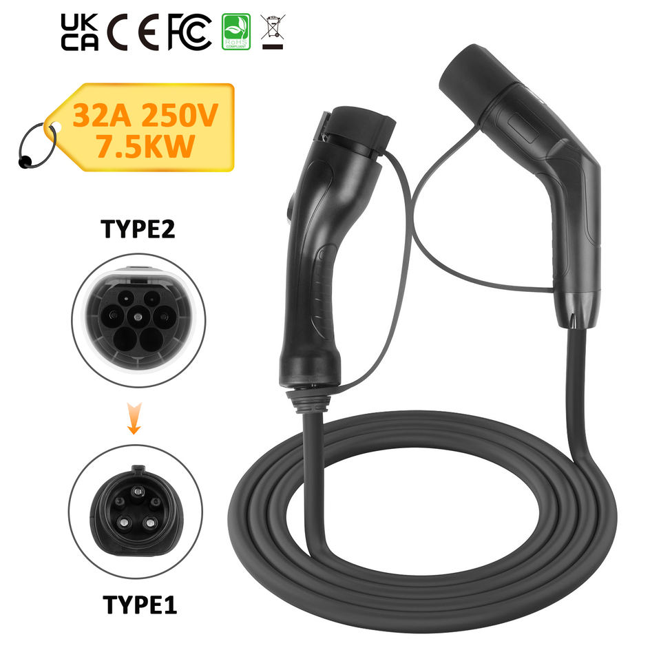 Wholesale 32A Type 2 to Type 1 Ev Charging Station Evse Current Adjustable 3m 5m Cable Ev Charger Cable