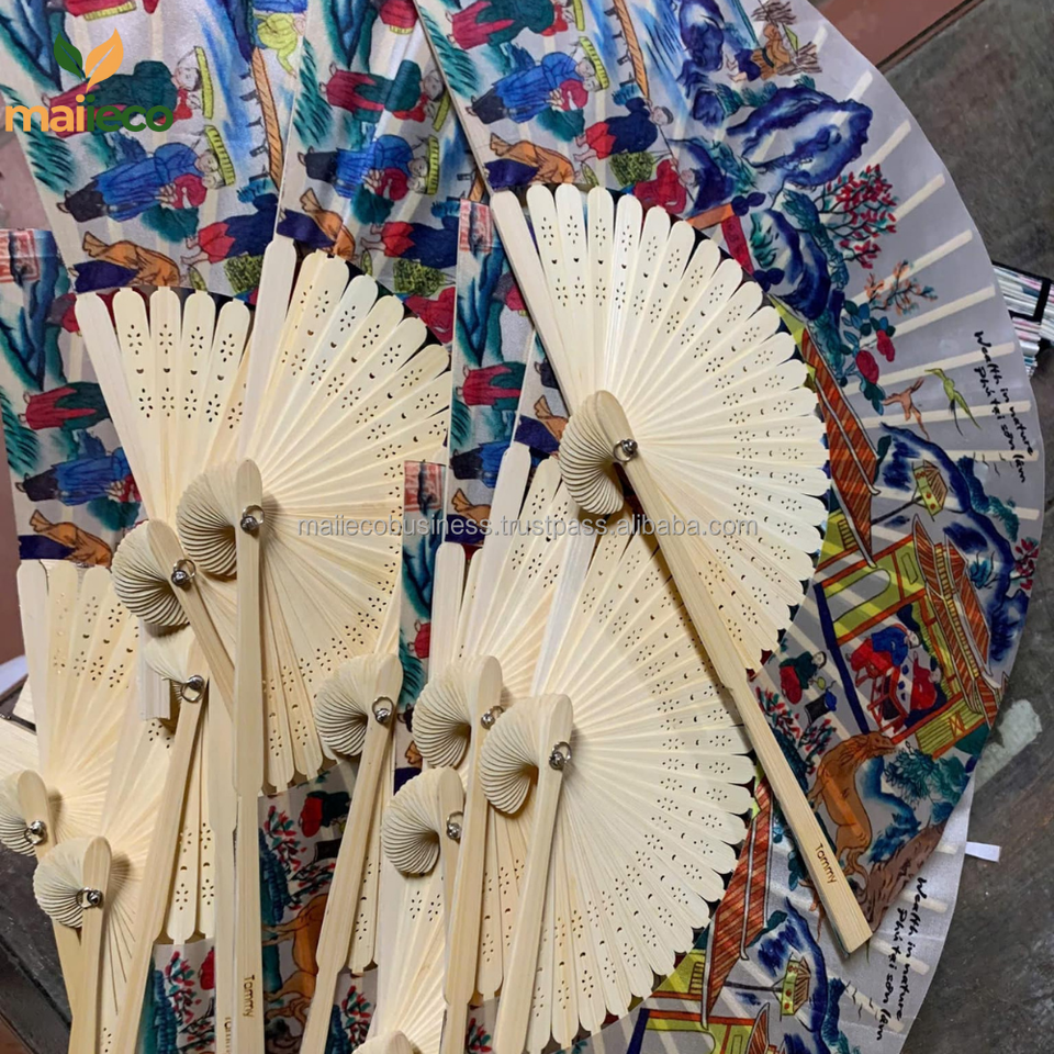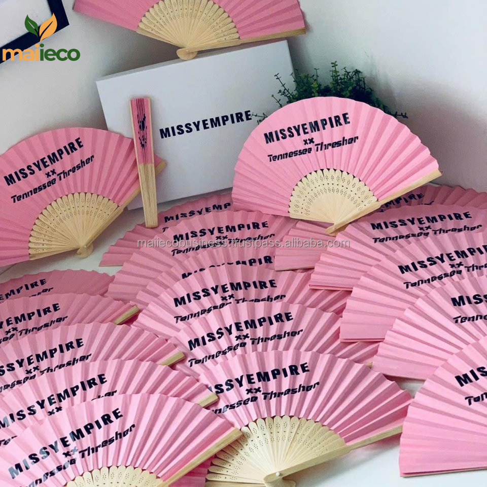 Wholesale 33cm Large Bamboo Hand Folding Eco-Friendly Paper Fan Printed Festival Rave Fan for Night Club and Promotions