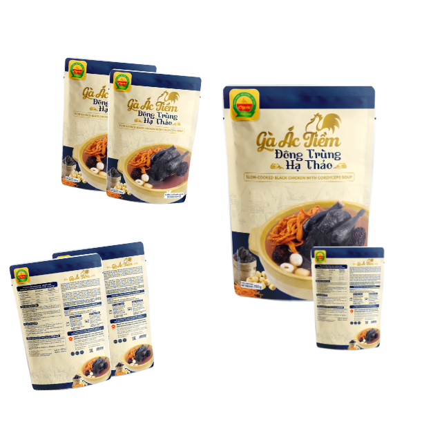 black chicken (30%), cordyceps (1,1%),...Ingredients