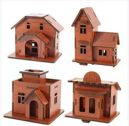 Wholesale 3D DIY Wooden Puzzle Models Handmade Game Cabin Construction Unisex Wood Toys for Kids' Age Range