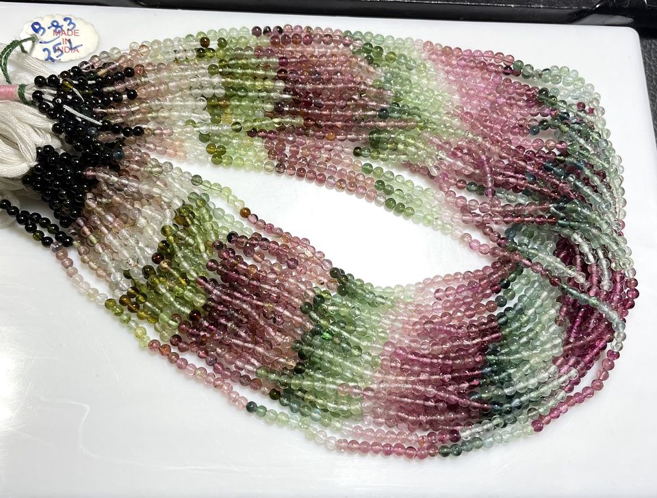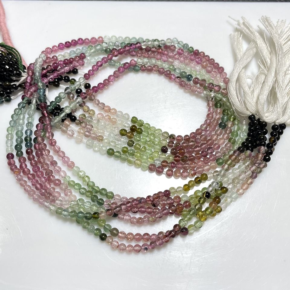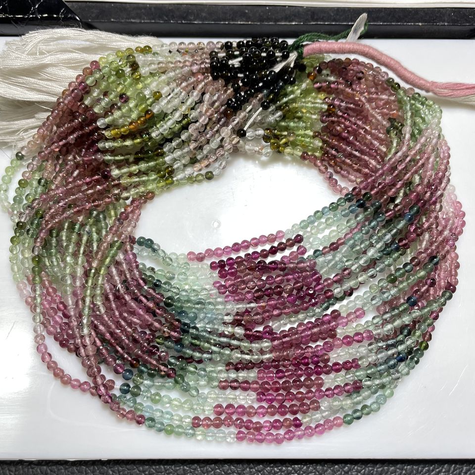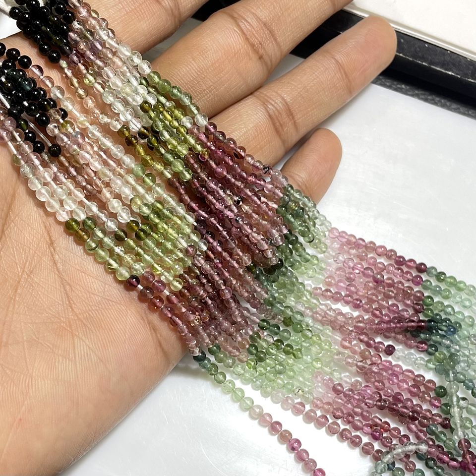 Wholesale 3mm Multi-Tourmaline Smooth Round Shape Beads Natural Gemstone Plain Beads for Crafting for DIY Shops