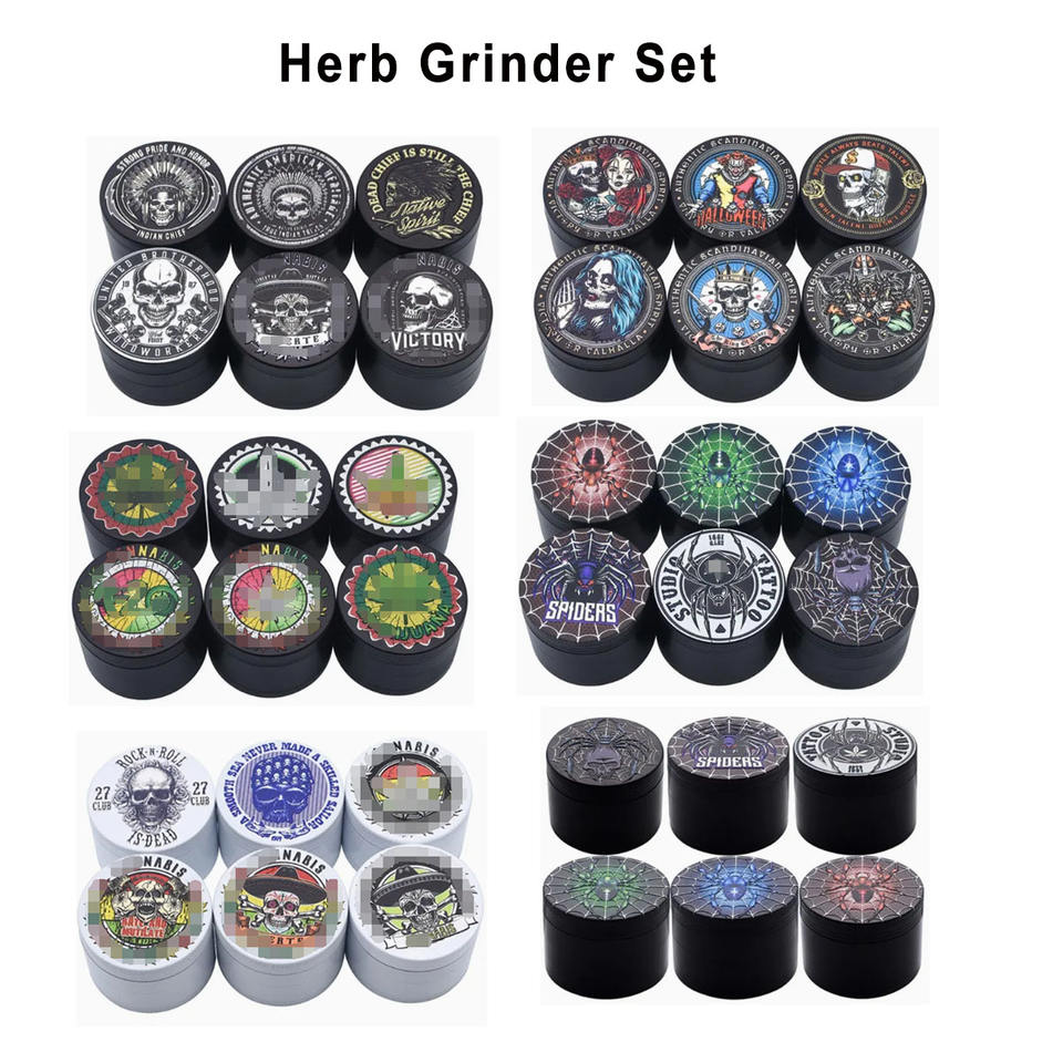 Wholesale 4 Piece Smoking Herb Grinder Modern Cartoon UV Printed Grinder Smoking Accessories Metal Zinc Alloy Herb Grinder