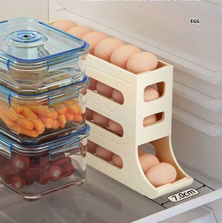 Wholesale 4-Tier 30 Grids Self-Rolling Egg Storage Container Large Capacity PP Plastic Detachable Egg Holder for Food