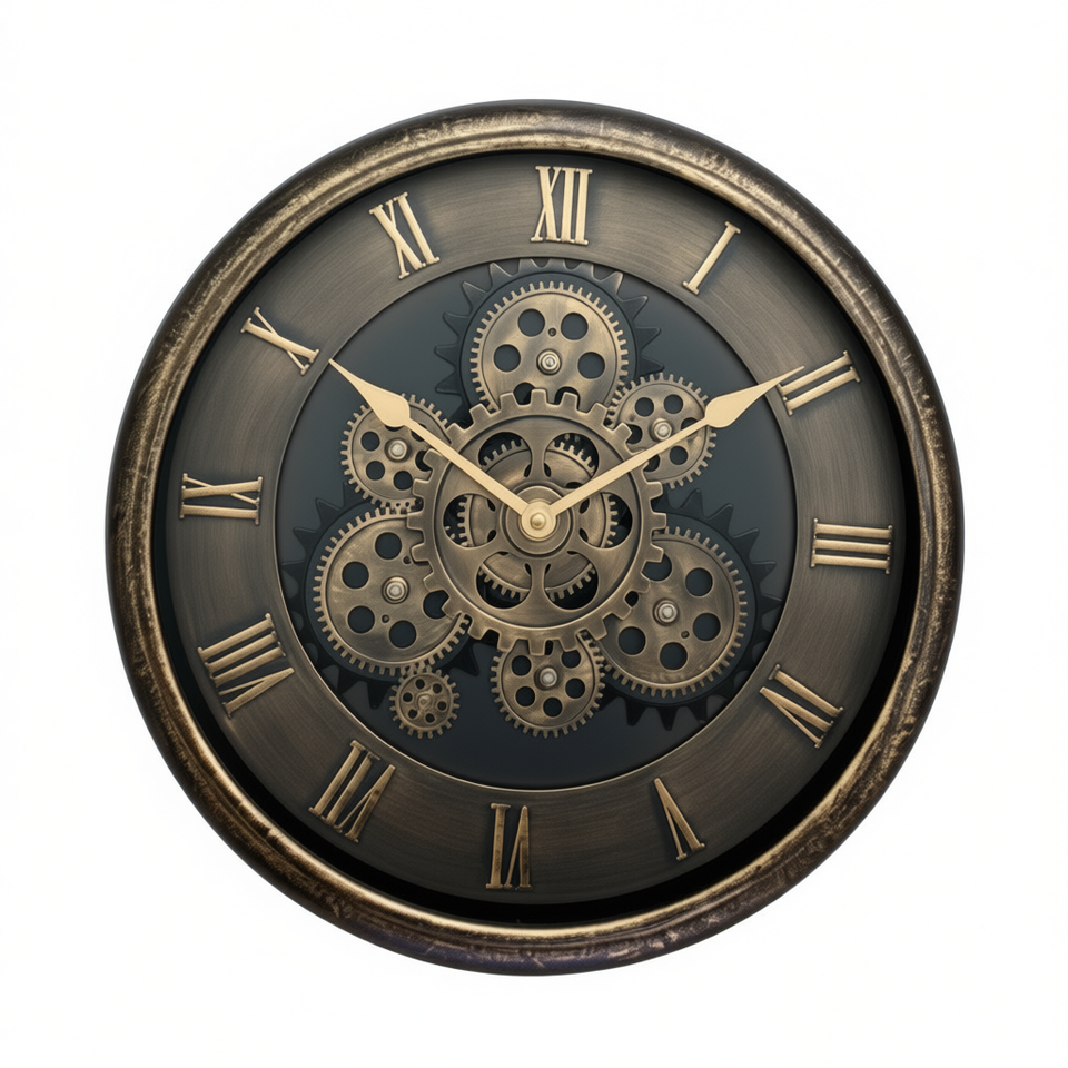 SUDA RESOURCE SA DE CV Antique Gear Wall Clock 40CM Round Analog Mechanical Metal Decorative Home Decor
